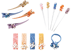 Des accessoires de cheveux très technicolor (beige sable, bleu outremer, jaune soleil, rose nacré et lavande), ornés de perles et de coquillages, qui sont autant de bijoux fantaisie pour embellir les chevelures. Au programme : pinces, chouchous, peignes, barrettes, liens et bandeaux pour jouer les B.B. version 2007 !