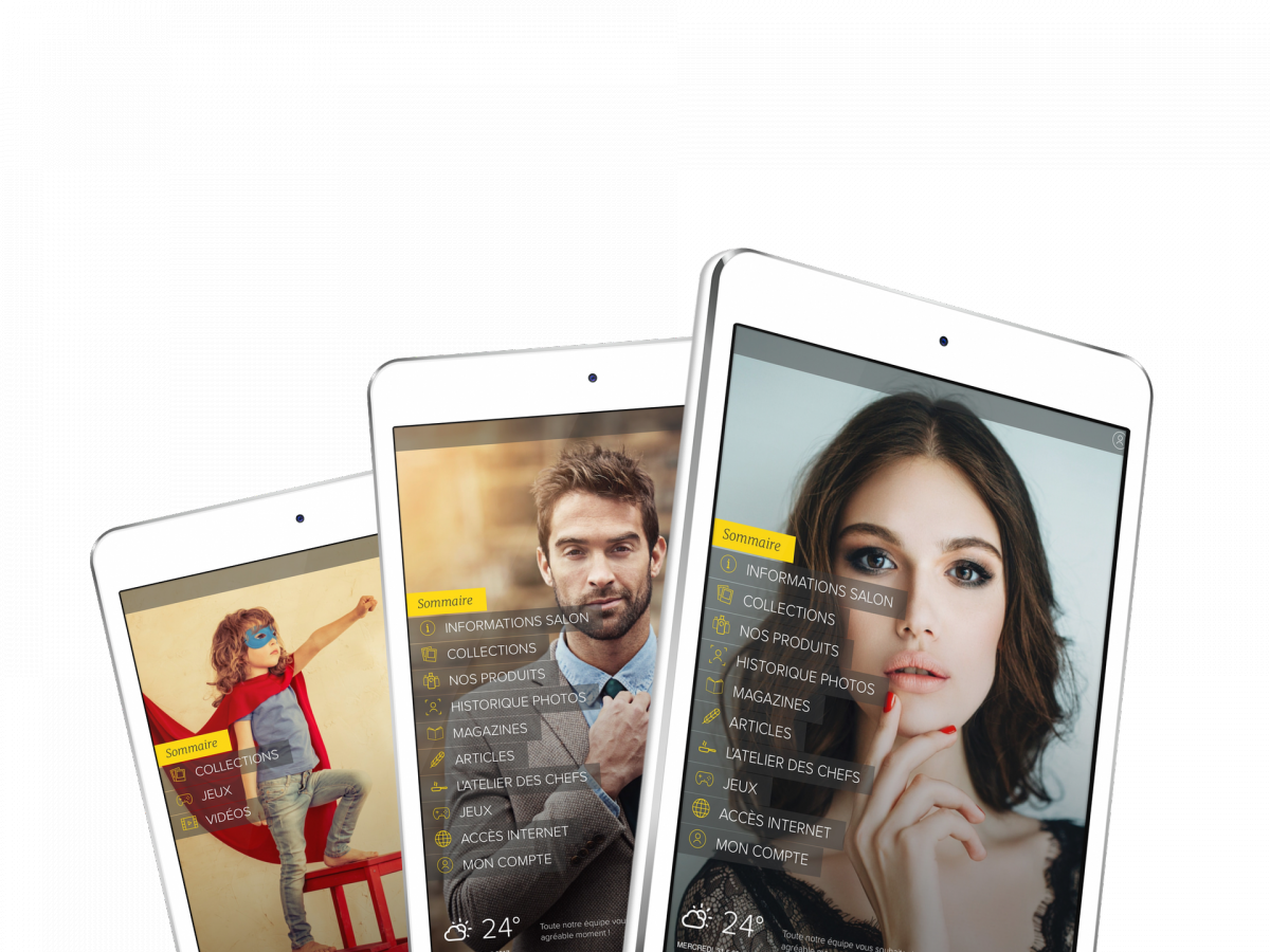 La société Phygitime a lancé Capibook, une tablette tactile iPad destinée aux clients des salons avec de nombreuses fonctions spécifiques. Entièrement personnalisable à l’image de l’enseigne, l’application est scindée en 3 univers (femme, homme et enfant) afin de répondre aux envies et besoins de chacun avec des collections, des produits liés à la coiffure mais aussi des magazines en version numérique, des jeux ou tout simplement via un accès au web ! Une expérience qui peut se poursuivre après le passage en salon, avec la version mobile de Capibook, que le client peut télécharger gratuitement. Il y retrouve les contenus (dont les populaires recettes de cuisine !) et les informations du salon tout en accédant à son historique de photos pour suivre l’évolution de son look.