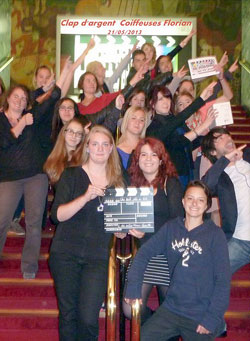 La finale de la 6ème édition du concours pédagogique « Je filme le métier qui me plaît » s’est récemment déroulée au Grand Rex, à Paris, devant 2 000 spectateurs. Parmi les candidats, les élèves du lycée Florian de Sceaux, qui concouraient dans la catégorie « Halte aux idées reçues ». Contents de leur travail, les jeunes n’attendaient pourtant rien d’autre, vu la forte concurrence, que le plaisir d’avoir participé… Et pourtant, ils ont reçu le « clap d’argent » pour leur vidéo de 3 minutes, un prix récupéré dans la joie en réalisant sur scène une chorégraphie plus ou moins improvisée ! Avec en cadeau pour le lycée, une caméra HD, une carte de reporter et un diplôme pour chaque élève ainsi que d’autres lots à venir. Enfin, les films seront présentés au concours international de Cannes Corporate Media & TV Awards, qui aura lieu en octobre prochain. Bravo à nos jeunes coiffeurs pour leur humour et leur travail !