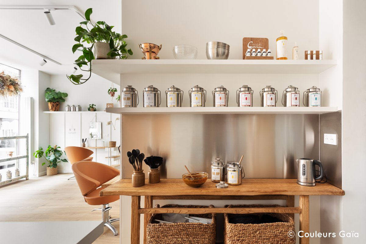 Si le siège et le premier salon d’application de Couleurs Gaïa restent bien à Cholet, un deuxième salon vient d’ouvrir à Paris à proximité de gare de Lyon. Ce salon pratique permet de renforcer les formations et de multiplier les retours du terrain. Un salon classique de 65m² qui dispose d’une salle de formation en plus des espaces traditionnels, dont une cabine, deux bacs allongés et bien sûr le vrac déployé en salon depuis un an. Ainsi équipé, l’espace permettant de réaliser les protocoles développés lors des sept formations du catalogue. Parmi elles les deux modules obligatoires afin d’avoir Couleurs Gaïa en dépôt mais aussi les formations complémentaires plus poussées. Le salon formera les coiffeurs les lundi et mardi, fonctionnant comme un salon 100% végétal classique le reste de la semaine. Parmi les 950 salons clients actifs près de 30% pratiquent les rituels bien être capillaire, certain allant jusqu’aux massages ayurvédiques développés par un partenaire. Aujourd’hui 8 centres de formation, dont 6 avec des ambassadeurs, sont en action avec une équipe de 18 formateurs. En 2021 ils ont reçu 750 coiffeurs, un chiffre que Couleurs Gaïa veut plus que doubler pour renforcer les compétences des coiffeurs clients et en accueillir de nouveaux, recrutés grâce à un renforcement des équipes, notamment commerciales. « Monter en gamme, proposer des services différentiants de qualité est aujourd’hui ce qui fonctionne, les salons ayant cette approche résistent mieux que les autres, » constate Benoit Bodineau le dirigeant de la marque. Et c’est bien ce que compte démonter ce nouveau salon.