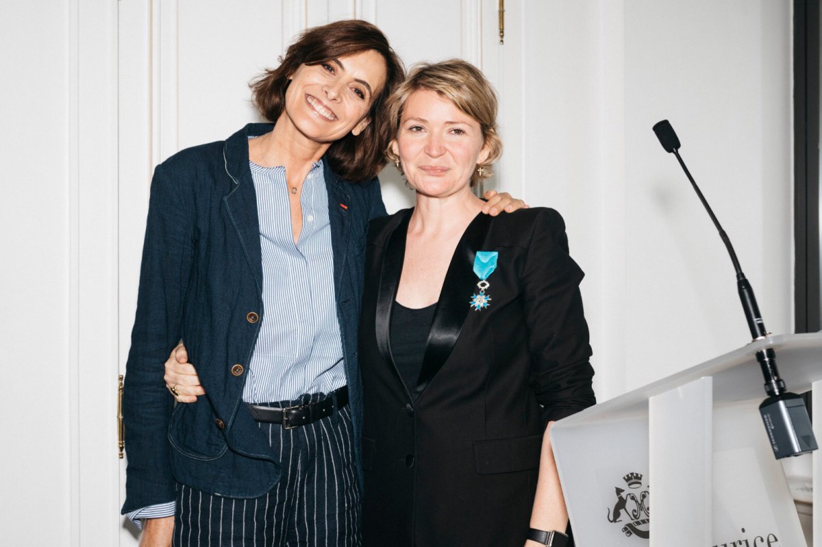 La coiffeuse Delphine Courteille, hairstylist L’Oréal Professionnel, qui œuvre à la fois en studio et en cabine de défilés, et dans son salon de la rue du Mont Thabor (Studio 34, Paris 1er) a été faite chevalier de l’Ordre national du mérite par Inès de la Fressange, le 29 juin dernier. Une cérémonie simple et chaleureuse qui s’est tenue dans la fameuse suite Belle Etoile de l’hôtel Le Meurice (Paris 1er), qui surplombe Paris et le jardin des Tuileries. L’ex-mannequin a épinglé son amie après un discours spirituel, drôle et pétillant, en présence de Vincent Mercier, directeur général L’Oréal Produits Professionnels France, de la créatrice Nathalie Rykiel, de la réalisatrice Emmanuelle Bercot, de la comédienne Mathilda May ou encore du chanteur Nicolas Sirkis (Indochine), entre autres. La coiffeuse, pourtant discrète, a ensuite pris le micro pour expliquer ce qu’elle devait à ses proches, mais aussi à son amour de l’image, de la mode, à la photographe Sarah Moon, et aux rencontres qu’elle avait faites. Soulignant que c’était un luxe de pouvoir vivre son rêve, elle a aussi rappelé qu’elle était fière de défendre les couleurs de l’artisanat français… et qu’il y avait encore bien peu de femmes dans les backstage… Une belle reconnaissance pour le métier. Même si d’autres coiffeurs(ses) talentueux mériteraient sans doute également d’être mis à l’honneur. À suivre !