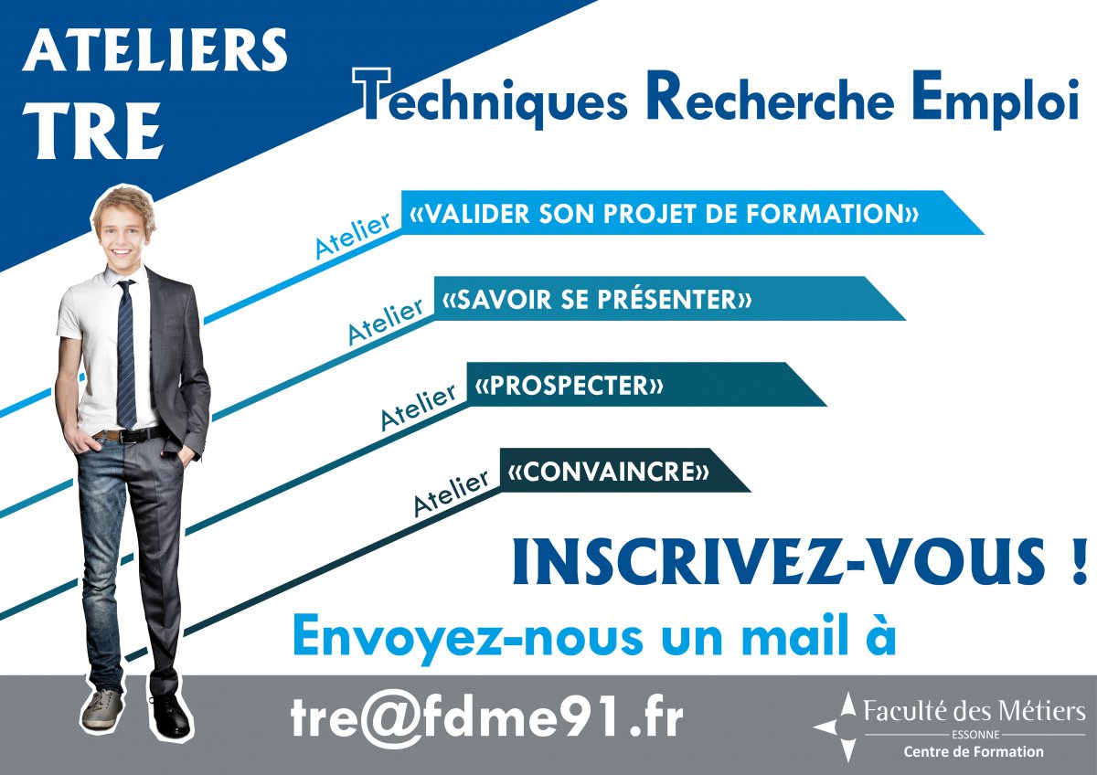 Pas toujours facile pour un jeune de trouver une entreprise qui accepte de l’accueillir en contrat en alternance. Pour aider ces jeunes pour qui, en général, l’entreprise est un monde nouveau, la Faculté des Métiers d’Evry (Essonne) organise pour la 3ème année consécutive des ateliers baptisés TRE, pour Techniques Recherche Emploi. Il en existe 4 : Valider son projet de formation (une nouveauté de cette année), Savoir se présenter, Prospecter, Convaincre. Le jeune y rencontre des formateurs et des apprentis en poste et mesure les actions à entreprendre pour réussir. Ces ateliers sont gratuits et ouverts à tous : il n’est pas forcément nécessaire d’être élève de la Faculté des Métiers pour les suivre, mais mieux vaut, bien sûr, se former dans une filière que la Faculté des Métiers propose. Une belle initiative !