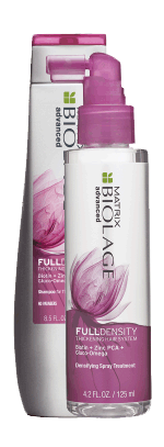 La marque positionnée « nature » de Matrix propose une gamme spécifiquement destinée aux cheveux fins et manquant de densité. Elle comprend un shampooing et un soin à rincer qui fortifient la fibre capillaire, un spray densifiant, pour épaissir de façon visible la chevelure, et un traitement de fond à la stemoxydine, une molécule du groupe L’Oréal qui booste le fonctionnement des cellules souches. Les produits comprennent du zinc, qui régule la sécrétion de sébum, de la biotine, pour son pouvoir renforçateur, et un mélange de glucose et d’acides gras.