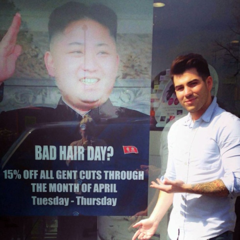 Corée du Nord encore et toujours, après le buzz des top coiffures autorisées officiellement, voici venir le temps du contrôle des agissements des coiffeurs étrangers !Les Coréens du Nord ne sont pas formés à l’humour, y compris les diplomates, c’est ce qu’a constaté un coiffeur londonien de M&M academy à Earling qui s’était moqué du leader éternel bien-aimé Kim Jong-Un. En cause un portrait du personnage détourné pour une promo avec comme slogan “bad hair day?” (coiffure des mauvais jours?) qui lui a valu des menaces des sbires (euh pardon, des diplomates) du chef de bande (euh pardon, du dirigeant) peu habitués à la liberté d’expression non suivi d’exécution ou de déportation en camps de rééducation. Le foreign office a même reçu une protestation officielle, le coiffeur refusant de céder à l’injonction de mettre fin à l’horrible provocation. Le salon a tout de même fini par retirer l’affiche, mais sous la pression… de ses clients!