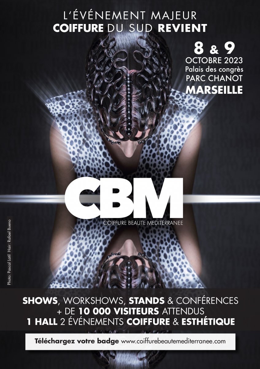 Le Coiffure Beauté Méditerranée se déroulera cette année les 8 et 9 octobre 2023, au Parc Chanot – Palais des Congrès de Marseille. Les deux grosses nouveautés sont : le changement de saisonnalité avec le passage du printemps à l’automne et un nouveau format avec le partenariat avec l’univers esthétique en s’alliant au salon Professionnel Beauty Prof’s pour compléter l’offre beauté. L’événement compte atteindre 10 000 visiteurs et une quarantaine d’exposants autour d’une centaine de marques. Depuis 2005, le CBM est le rendez-vous artistique et business incontournable du Sud. Au niveau artistique, le pré-programme est déjà connu : Christophe Nicolas Biot pour Wella Professionals, Damien Roux pour Didact, Christophe Pujol et Béata Bourillon pour Eugène Perma Professionnel, Marco Geracci et Arte Moda pour Davines, Stevens Outh pour Itsi-Ban, Pierre Ginsburg pour Revlon Professional, Eric Maurice pour Jacques Seban, Patrick Lagré et sa team Toni & Guy France, Cyril Bazin pour Schwarzkopf Professional France. Le Festival ce sont aussi des workshows, des conférences avec Toni & Guy, Stéphane Amaru, Jean Christophe Robelot pour Ikosoft, Carole Robequin, Anjela Gauvin, Jean-Romain Juanico, Jean Luc Leonelli, Eric Sarocchi, Stéphane Battistella, pour l’Académie Coiffure Beauté…