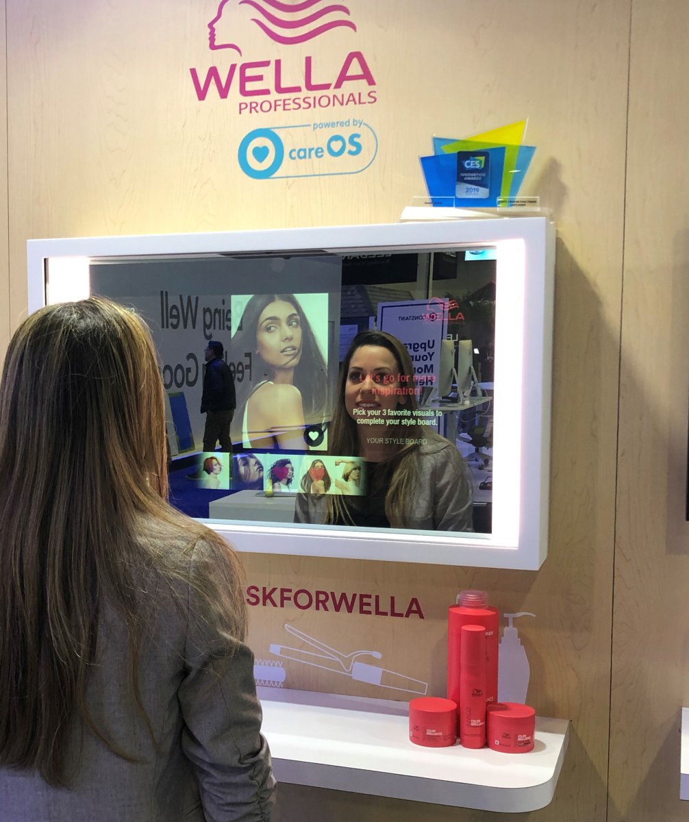 Depuis quelques années, les miroirs intelligents et/ou connectés s’invitent dans certaines boutiques branchées. Coty y va aussi de son initiative, et a ainsi présenté le miroir intelligent Smart Mirror Wella Professionals pour les salons de coiffure, lors de l’expo sur l’intelligence artificielle CES 2019 de Las Vegas le 7 janvier. Lauréat du concours de l’innovation, le logiciel CareOS intégré au miroir Artémis à reconnaissance faciale accompagne la cliente de la consultation au choix de la coloration, visualisé en direct en réalité augmentée à 360°. La cliente peut ainsi avoir une bonne estimation du résultat final et ses précédents essais sont gardés en mémoire. Le logiciel fonctionne également sur tablette et téléphone portable. La visualisation immédiate, en mouvement, facilite le dialogue. Le résultat virtuel est évidemment facile à partager sur les réseaux sociaux. Le miroir peut être connecté à une base de données permettant de centraliser les informations et de les consulter de partout ou encore de rechercher des infos sur divers produits et leur utilisation !