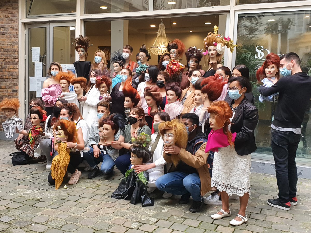 Sophie Lados, la directrice de l’école Saint Louis implantée dans le 9e arrondissement parisien, n’est pas du genre à se faire surprendre deux fois. En 2020, le traditionnel concours de l’école a dû être suspendu du fait du premier confinement. Cette année, le concours s’est tenu la veille du troisième confinement, le 1er avril ! Une quarantaine d’élèves de CAP se sont répartis sur toutes les salles ouvertes sur une cour intérieure. Quant aux professeurs, s’ils ont supervisé et évalué le travail de chignons et d’attaches avec un jury de professionnels, ils ont également eu la pression de devoir démontrer leur propre maîtrise technique lors d’une démonstration clôturant les épreuves.