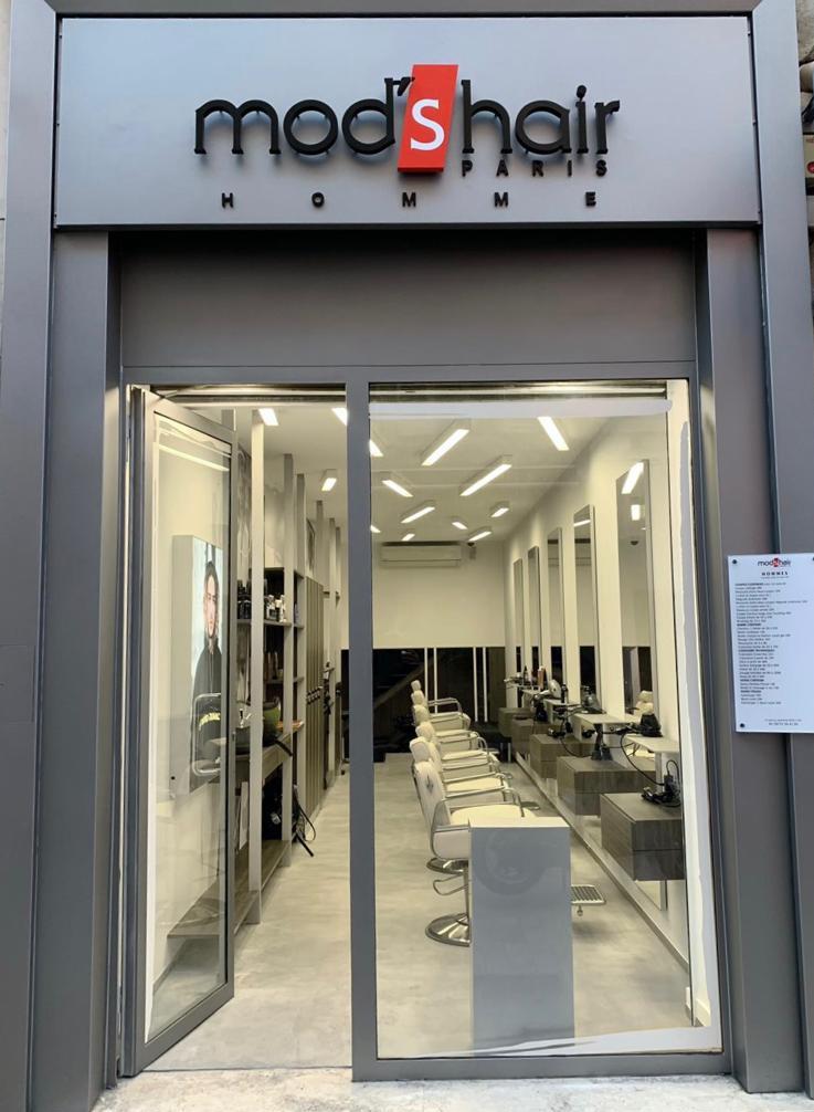 En parallèle au lancement de sa collection homme, Mod’s Hair ouvre un premier salon 100% masculin à Marseille au 27 rue de Paradis sur 50m². Au menu des services de lissage, de soin mais aussi le camouflage des cheveux blancs. Le lieu est partenaire de Redken Brews. L’enseigne avait déjà une offre de soin dédiée à l’homme mais sans les dissocier du reste des clientes. Le choix d’un lieu spécifique devrait être amené à se développer dans d’autres villes. Le concept s’appuie sur une façade en alu brossé, un graphisme ivoire, un mural qui englobe étagères et casiers en bois et les visuels. Les postes de coiffage sont composés de miroir tout en hauteur et des tablettes en bois, avec l’emblématique fauteuil ivoire pour le confort des hommes.