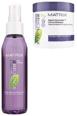 La gamme pour cheveux secs de Biolage accueille deux nouveautés. Tout d’abord, le masque crème Aqua-Immersion, sans silicone ni paraben, apporte une nutrition intense ; on le laisse poser 3 à 5 minutes avant de rincer. Pour sa part, la brume hydratante, riche en huiles d’olive et de noix de coco, se présente comme un spray léger conçu pour l’entretien quotidien des cheveux secs. Par ailleurs, l’ensemble de la gamme a été reformulé, pour renforcer encore son pouvoir nutritif : elle se compose d’aloe vera (une plante qui contient 96 % d’eau) et de fruits de la passion, riches en vitamines et antioxydants.