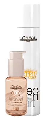 Tec Ni Art, la gamme de coiffants de L’Oréal Professionnel, accueille deux nouvelles familles : Nude Touch et Get Dusty. Nude Touch s’adresse aux clients qui recherchent avant tout un effet et un toucher naturels, tout en conservant un bon niveau de fixation. Elle comprend 3 produits : un sérum texturisant pour le brushing, une mousse pour cheveux bouclés et un spray coiffant. Pour sa part, la ligne Get Dusty repose sur une technologie à base de poudres très fines. Elle se compose d’un shampooing sec et de deux poudres coiffantes.