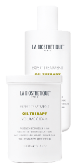 et/ou fragilisés. Il consiste en un bain d’huile nutritive, suivi par l’application d’une crème-baume qui vient former une couche protectrice autour du cheveu. Deux variantes existent : Oil Therapy Volume, pour réduire les fourches et apporter du volume aux cheveux fins, et Oil Therapy Vital, pour discipliner et réparer les cheveux normaux à épais.