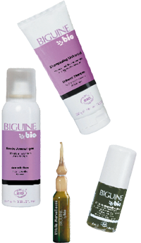 Depuis la mi-avril, les salons Jean-Claude Biguine proposent une gamme de produits capillaires bio, disponibles en usage salon et à la revente. Ces produits ont reçu le label de la charte Cosmebio. Riche en huiles essentielles (de lavande entre autres), la gamme comprend une huile de traitement pour cheveux fatigués, un shampooing pour tous types de cheveux, un masque pour cheveux secs ou abîmés, une Rosée aromatique démêlante.