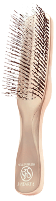 Créée et fabriquée au Japon, la Scalp Brush est équipée d’un manche ergonomique et surtout de 376 fibres de nylon de longueurs et de diamètres différents, positionnés de façon étudiée sur le socle en résine époxyde plein. Cela lui permet de démêler sans les casser les cheveux, même les plus fragiles, et de stimuler la micro-circulation du cuir chevelu. On peut aussi utiliser cette brosse pour faciliter la répartition des shampooings et des masques sur la chevelure et le cuir chevelu, pour une plus grande efficacité.