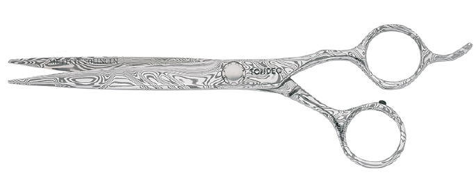 Rendu exceptionnel pour cette paire de ciseaux en acier inoxydable damas 120 couches. Les lames de 7 cm sont rectifiées en concave et convexe pour une meilleure accroche. Le raccord réglable est monté avec un roulement